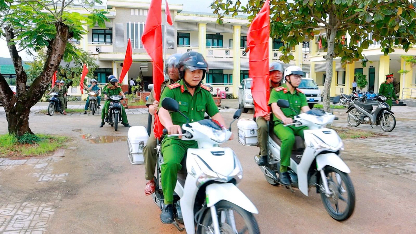 Ngay sau lễ, lực lượng Công an xã tổ chức diễu hành trên các trục giao thông chính, tạo không khí sôi nổi, lan tỏa tinh thần quyết tâm tấn công, trấn áp tội phạm đến Nhân dân trên địa bàn.