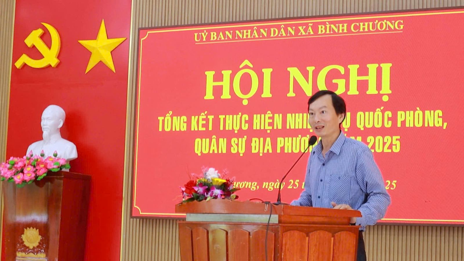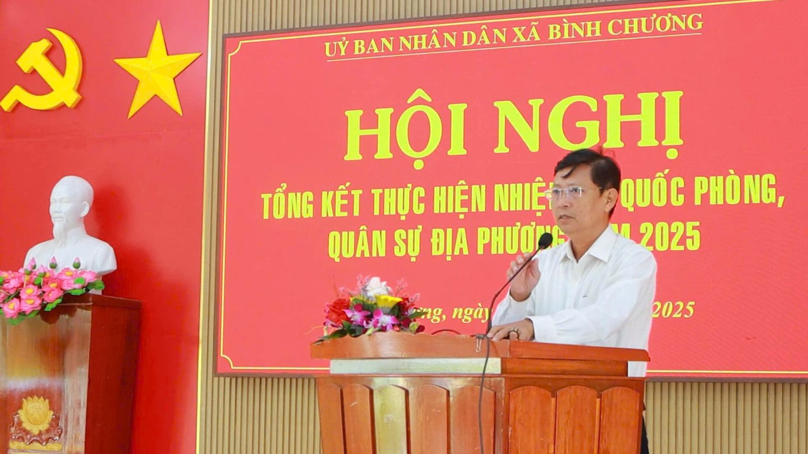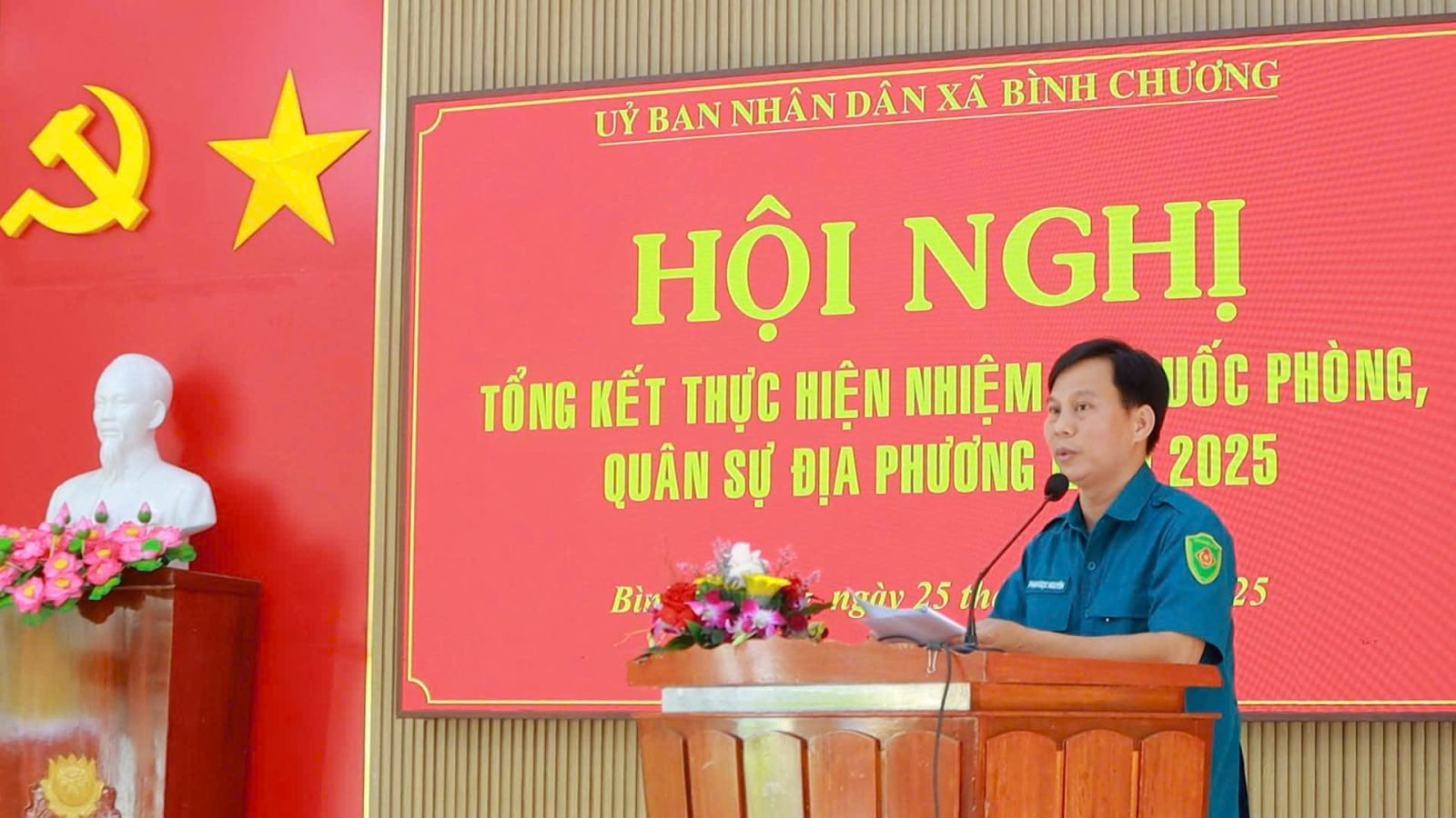 Sáng 25/11/2025, UBND xã Bình Chương tổ chức Hội nghị tổng kết nhiệm vụ Quân sự – Quốc phòng địa phương năm 2025 và triển khai nhiệm vụ năm 2026. Hội nghị do đồng chí Võ Văn Tâm – Chủ tịch UBND xã chủ trì.