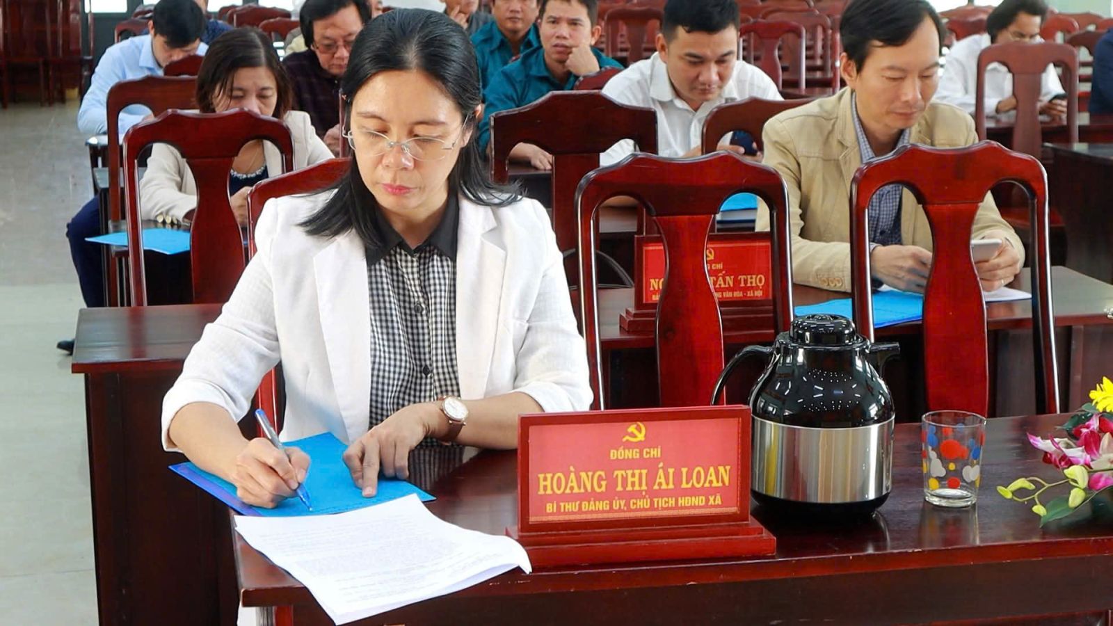 Tham dự có đồng chí Hoàng Thị Ái Loan – Bí thư Đảng ủy, Chủ tịch HĐND xã; đồng chí Nguyễn Thị Vị – Chủ tịch UBMTTQ Việt Nam xã; đồng chí Phan Thanh Tuấn – Ủy viên Ban Thường vụ Đảng ủy, Trưởng ban Xây dựng Đảng; lãnh đạo các cơ quan, đơn vị, đoàn thể, Công an xã, đại diện trường học, trạm y tế, bí thư chi bộ – trưởng thôn và các tập thể, cá nhân được khen thưởng.