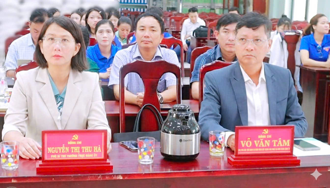 Tham dự hội nghị có đồng chí Nguyễn Thị Thu Hà – Phó Bí thư Thường trực Đảng ủy xã; đồng chí Võ Văn Tâm – Phó Bí thư Đảng ủy, Chủ tịch UBND xã, chủ trì hội nghị; đồng chí Nguyễn Văn Quân – Phó Chủ tịch UBND xã; đại diện Thường trực Ủy ban MTTQ Việt Nam xã; Ban Chấp hành Đoàn Thanh niên xã; lãnh đạo các cơ quan chuyên môn thuộc UBND xã; Công an xã, Ban Chỉ huy Quân sự xã; lãnh đạo Trung tâm Phục vụ hành chính công; đại diện các trường học, trạm y tế trên địa bàn; trưởng các thôn cùng đông đảo đoàn viên, thanh niên.