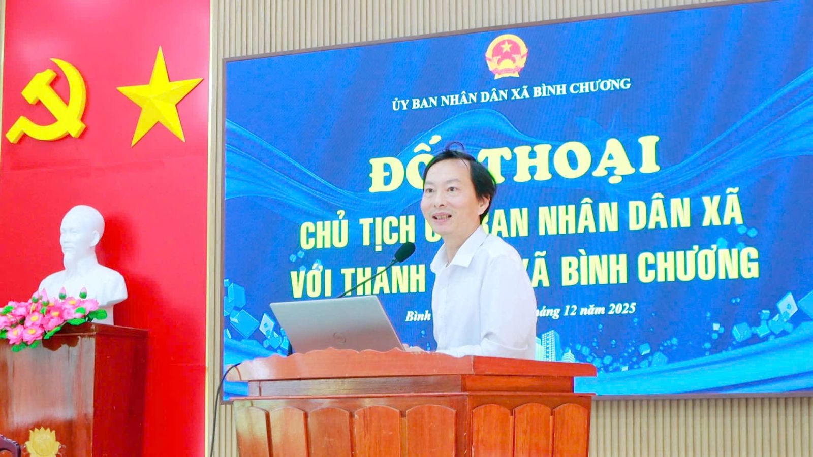 Sáng ngày 14/12/2025, tại Hội trường UBND xã Bình Chương, UBND xã tổ chức Hội nghị đối thoại giữa Chủ tịch UBND xã với thanh niên năm 2025, thực hiện Kế hoạch số 46/KH-UBND ngày 23/10/2025 của UBND xã. Hội nghị được tổ chức với chủ đề “Đoàn viên, thanh niên với công tác phòng, chống tệ nạn xã hội”, với sự tham gia của khoảng 100 đoàn viên, thanh niên trên địa bàn xã.