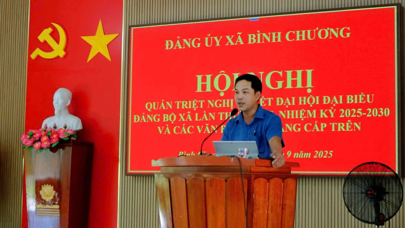 Sáng ngày 11/9/2025, tại Hội trường UBND xã Bình Chương, Đảng ủy xã đã tổ chức Hội nghị quán triệt, triển khai các nghị quyết, chỉ thị, kết luận của Trung ương, của Tỉnh ủy và Đảng ủy xã.