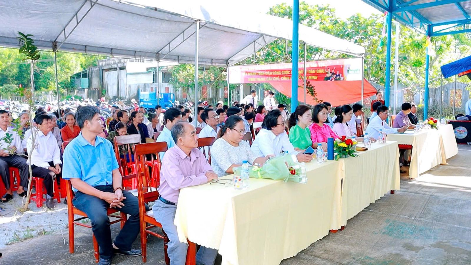 Tham dự buổi lễ có các đồng chí: Hoàng Thị Ái Loan – Bí thư Đảng ủy, Chủ tịch HĐND xã; Nguyễn Thị Thu Hà – Phó Bí thư Thường trực Đảng ủy; Võ Văn Tâm – Phó Bí thư Đảng ủy, Chủ tịch UBND xã; Nguyễn Thị Vị – Chủ tịch Ủy ban MTTQ Việt Nam xã, cùng đại diện lãnh đạo các tổ chức chính trị – xã hội, các ban ngành chuyên môn của xã; Bí thư chi bộ, Trưởng thôn, Trưởng Ban công tác Mặt trận các thôn và đông đảo cán bộ, đảng viên, Nhân dân thôn An Phong.