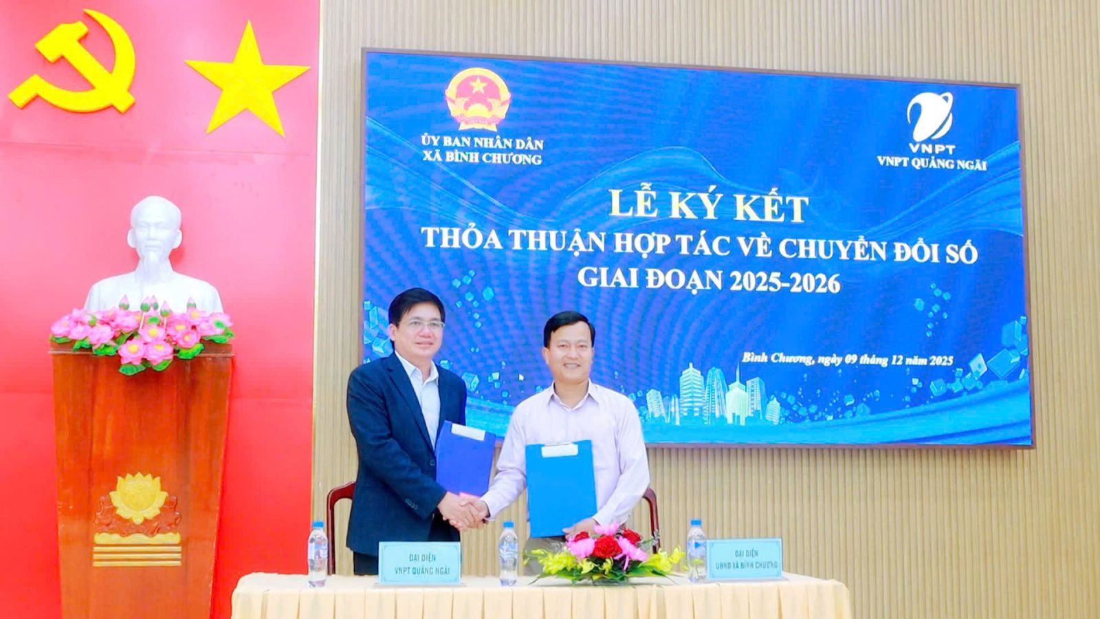 Sáng 09/12/2025, tại Hội trường UBND xã, UBND xã Bình Chương tổ chức Lễ ký kết thỏa thuận hợp tác về chuyển đổi số giai đoạn 2025–2030 với Viettel và VNPT Quảng Ngãi, đồng thời ra mắt Trang Zalo OA (Official Account) của UBND xã Bình Chương.